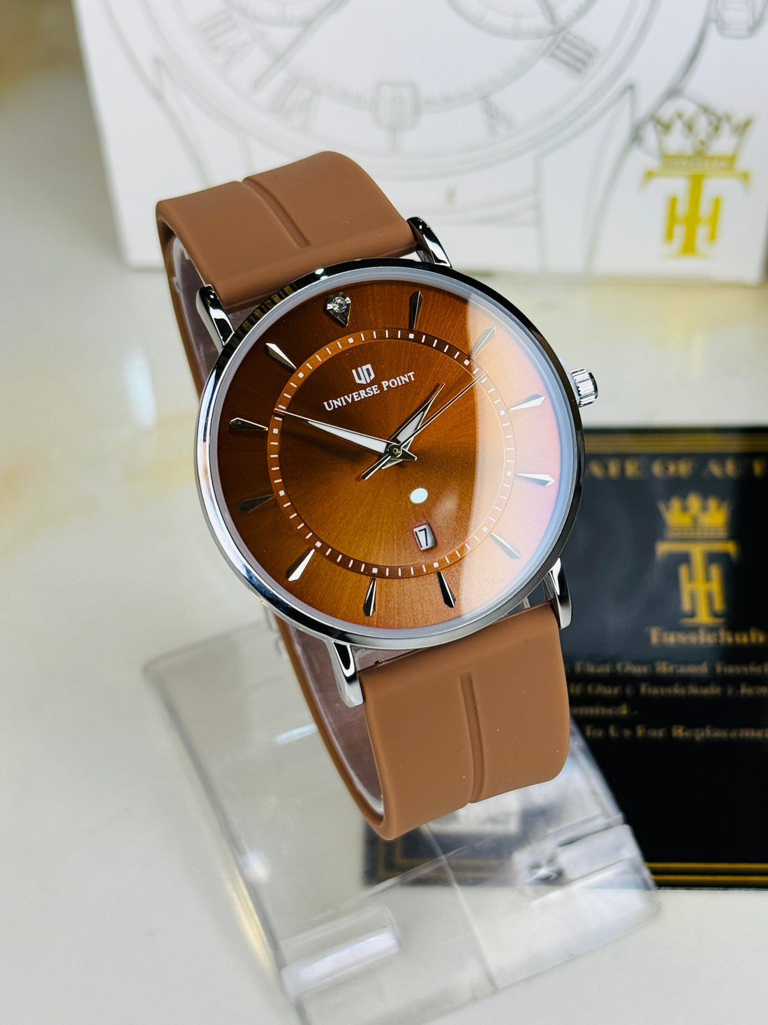 Premium Branded Watch Extra Slim Dial Balloon Glass Date Chronograph Textured Waterproof Silicon Straps Silver Dial...