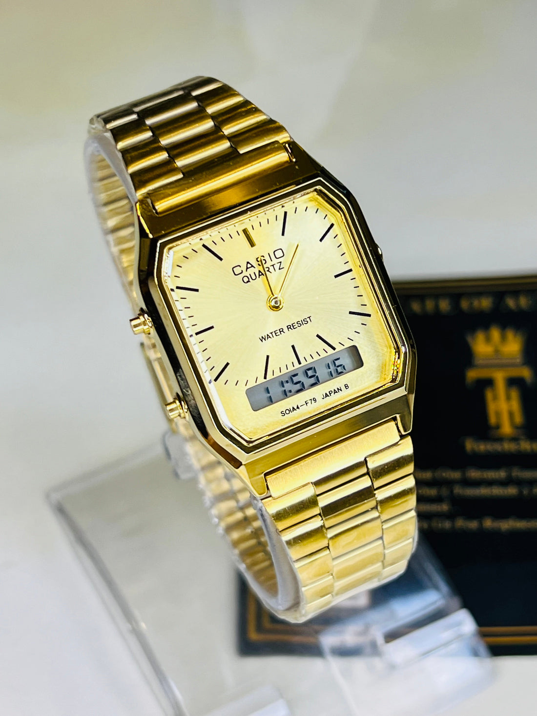 Premium Branded Casio Watch Gold Stainless Steel Straps Gold Digital and Analog Dial Light Feature Alarm...
