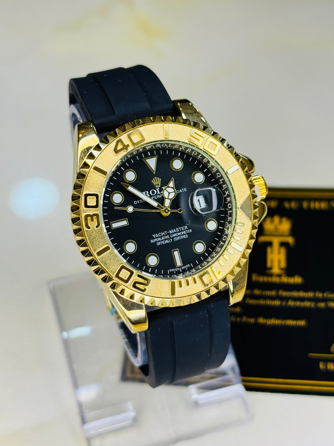 Gold Black High Quality Yatch Master Watch Oyster Silicon Adjustable Straps With Brand Markings Rotating...