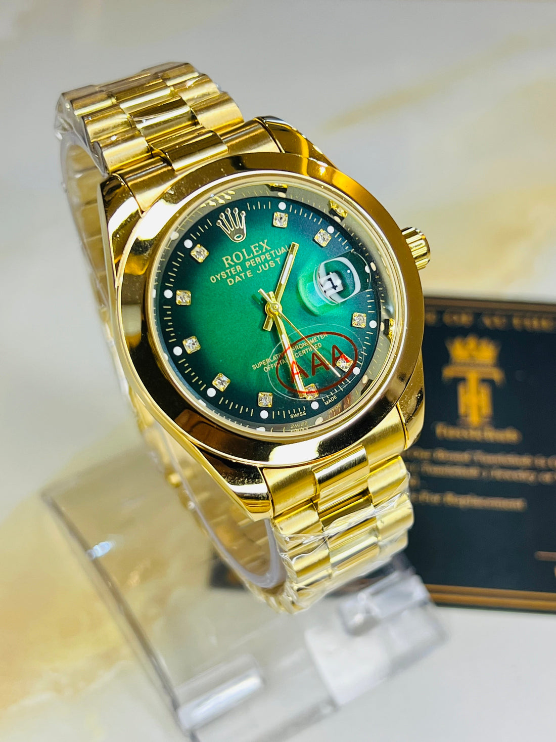 Premium Branded Minimal Watch Gold Stainless Chain Straps Gold Stainless Dial Case Emerald Green Dial ...