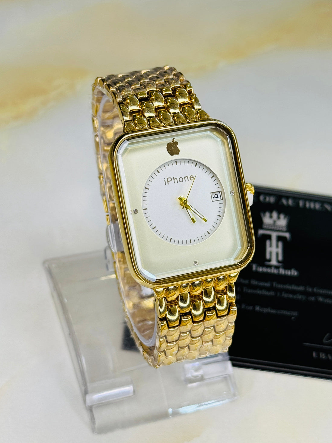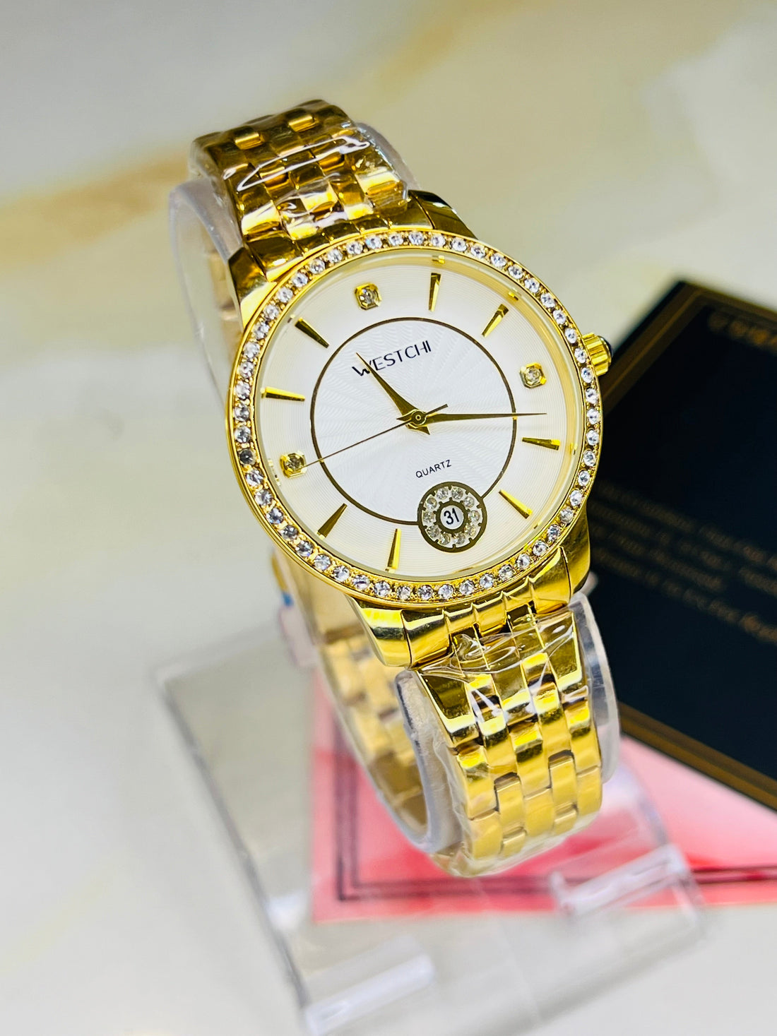 Premium Branded Westchi Watch Gold Chain Strap White Dial Stainless Steel Material 33mm Dial Size ...