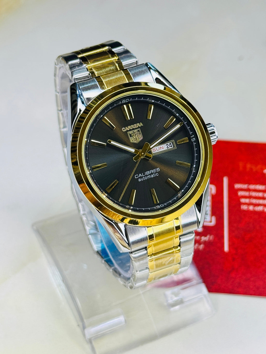 Tag Heur Two Tone Black Carrera Day Date Chain Strapped Watch