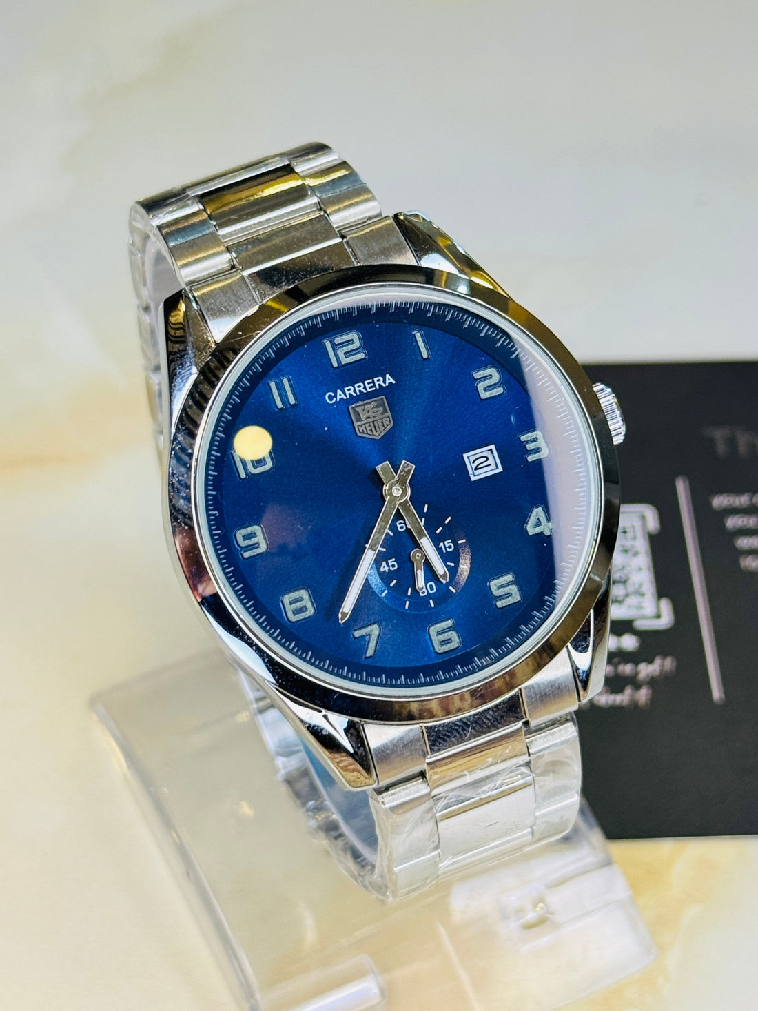 Premium Branded Tag Heur Carrera Watch Silver Stainless Steel Dial Case Aqua Blue Chronograph Dial ...