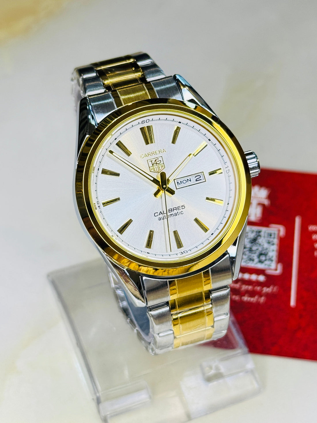 Tag Heur Two Tone White Carrera Day Date Chain Strapped Watchh