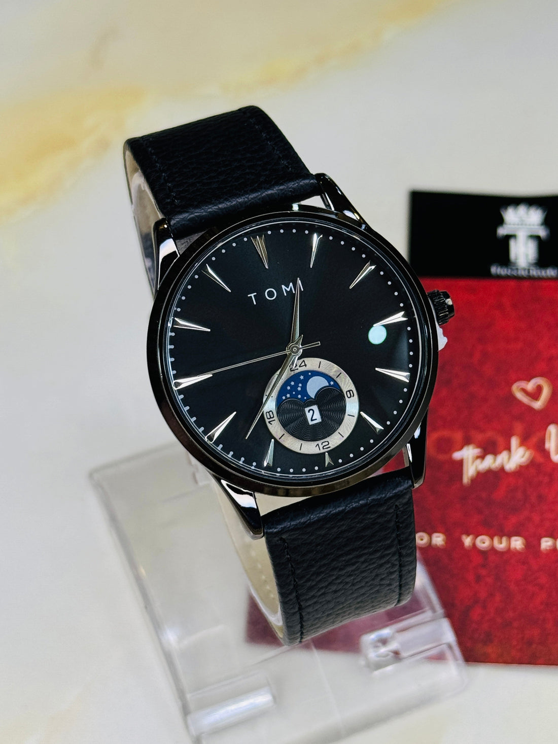 Tomi Branded Watch Black Leather Straps Black Dial Black Dial Case 37mm Dial Size 1...