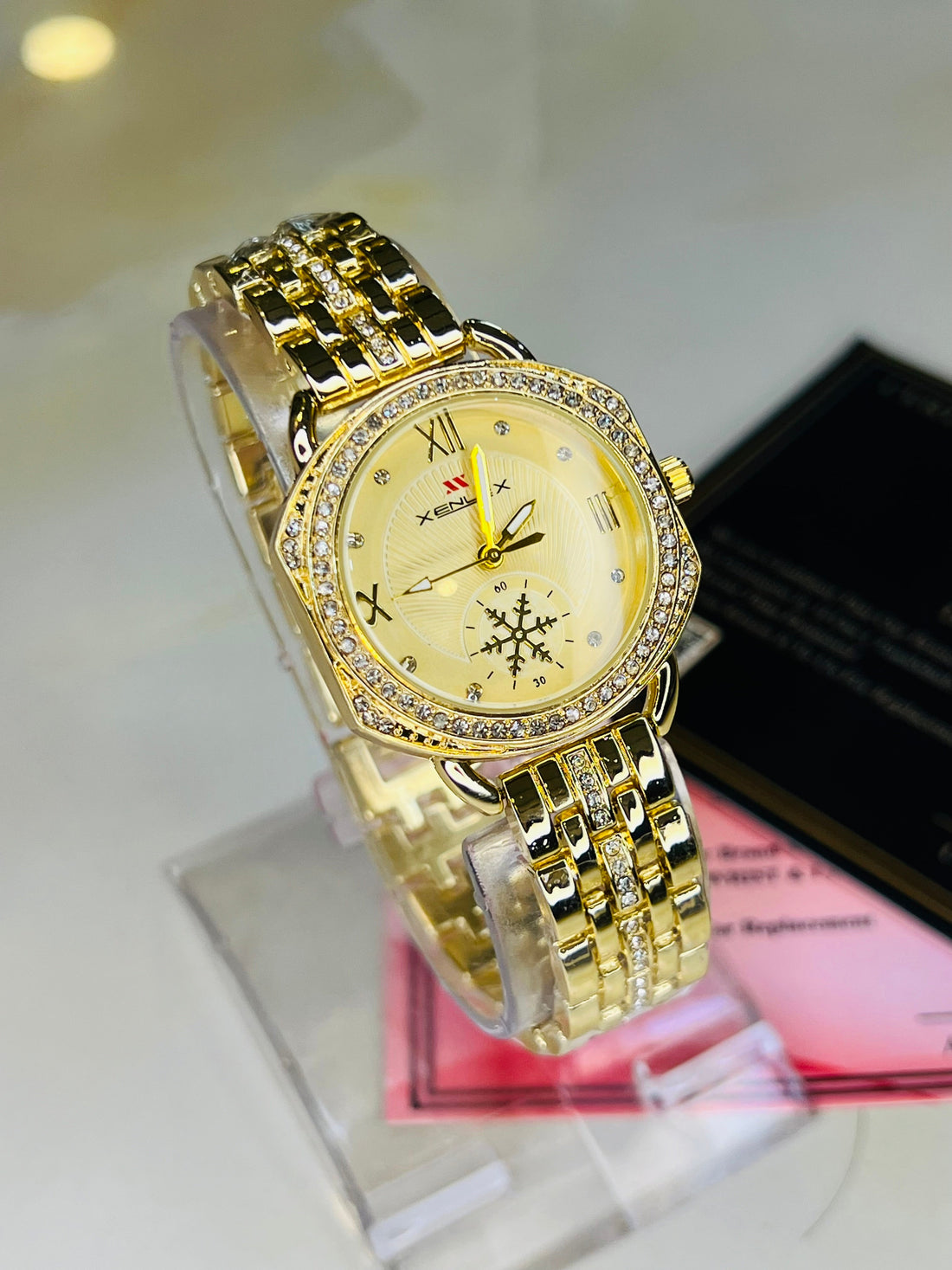 Premium Branded Meibin Watch Gold chain Straps Gold White Dial Stainless Steel Dial Material With...