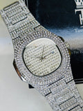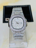 Silver Iced Out Nautilus Watch