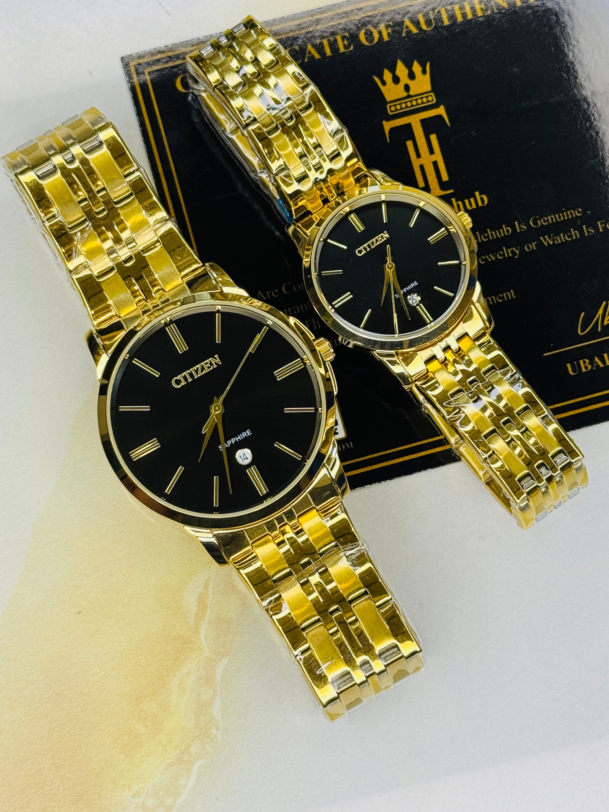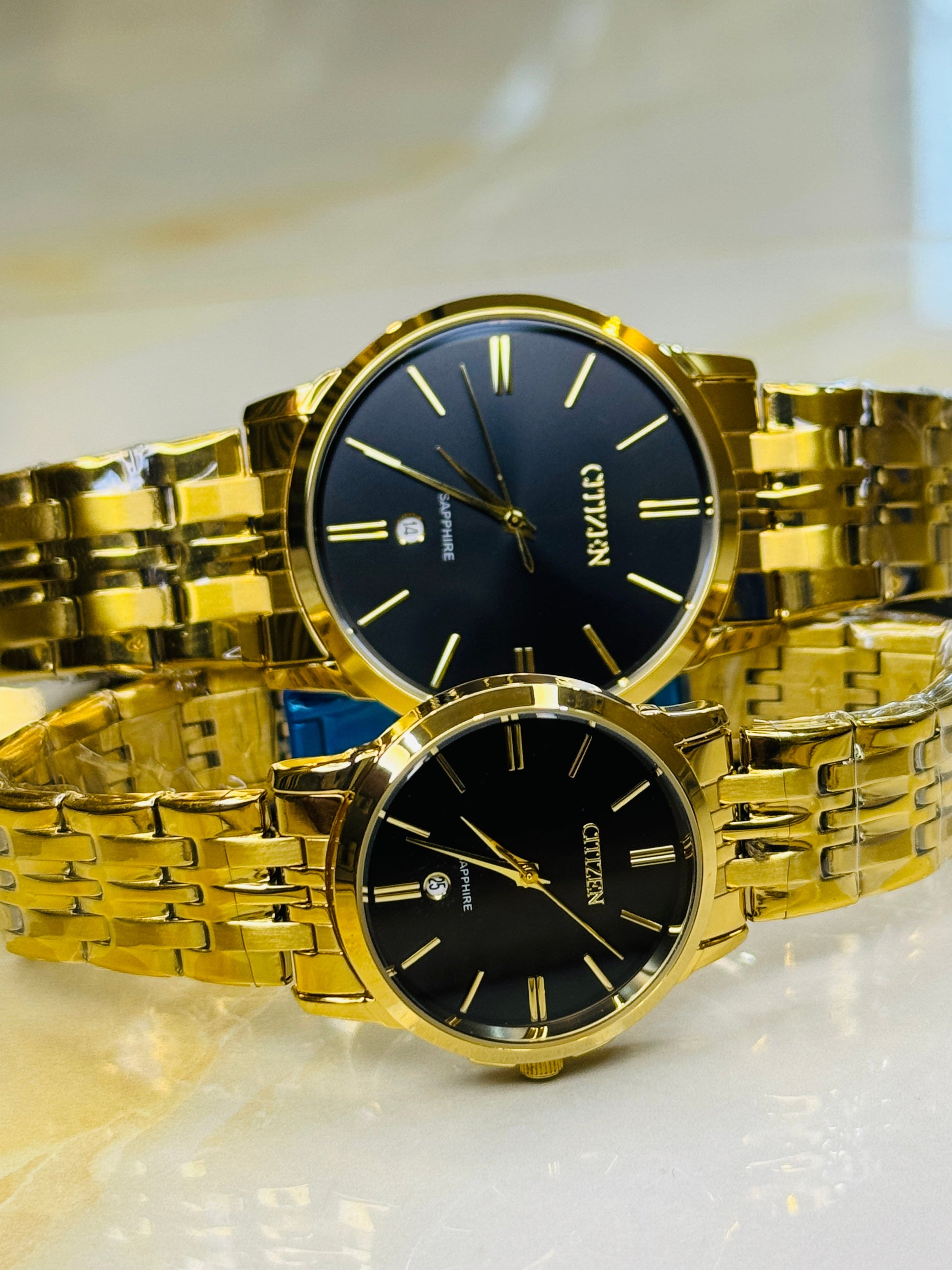 Gold Black Down Date Citizen Couple Watch