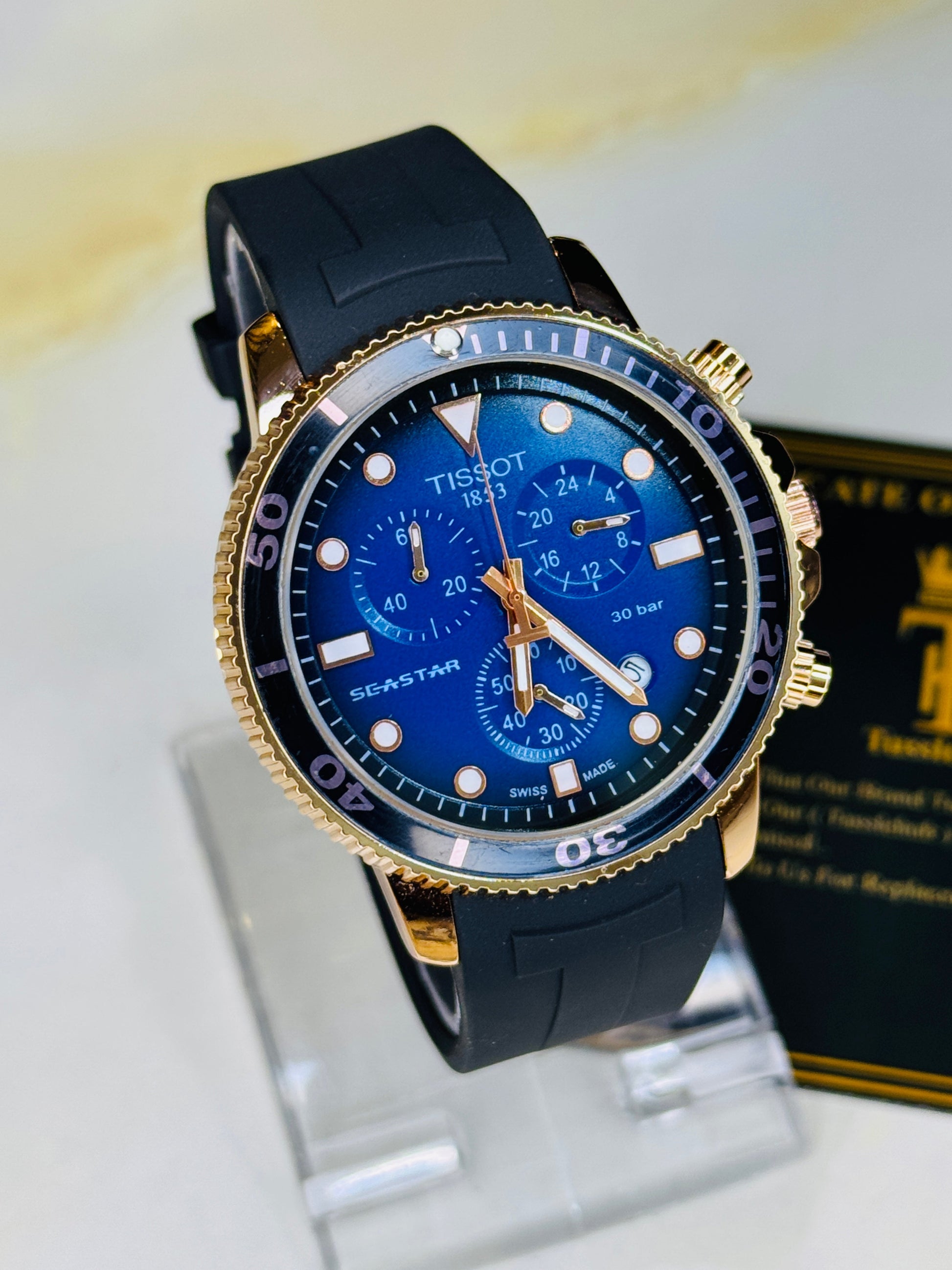 Black Rose Gold Sapphire Tissot Sea Star Chronograph Watch