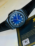 Black Leather Black Sapphire Dial Nautilus Watch