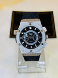 Black Silver Black Hologram Hublot Leather Strap Watch