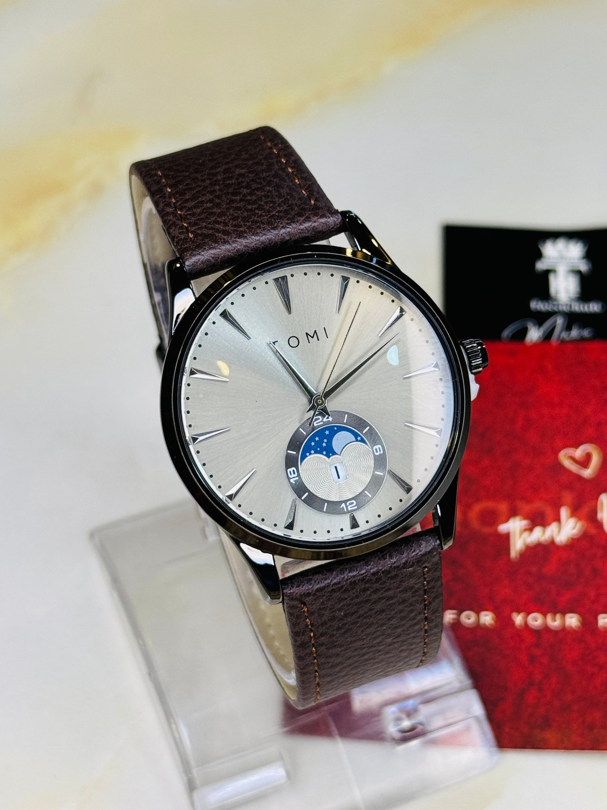 Tomi Coffee Grey Leather Magnetic Strap Watch