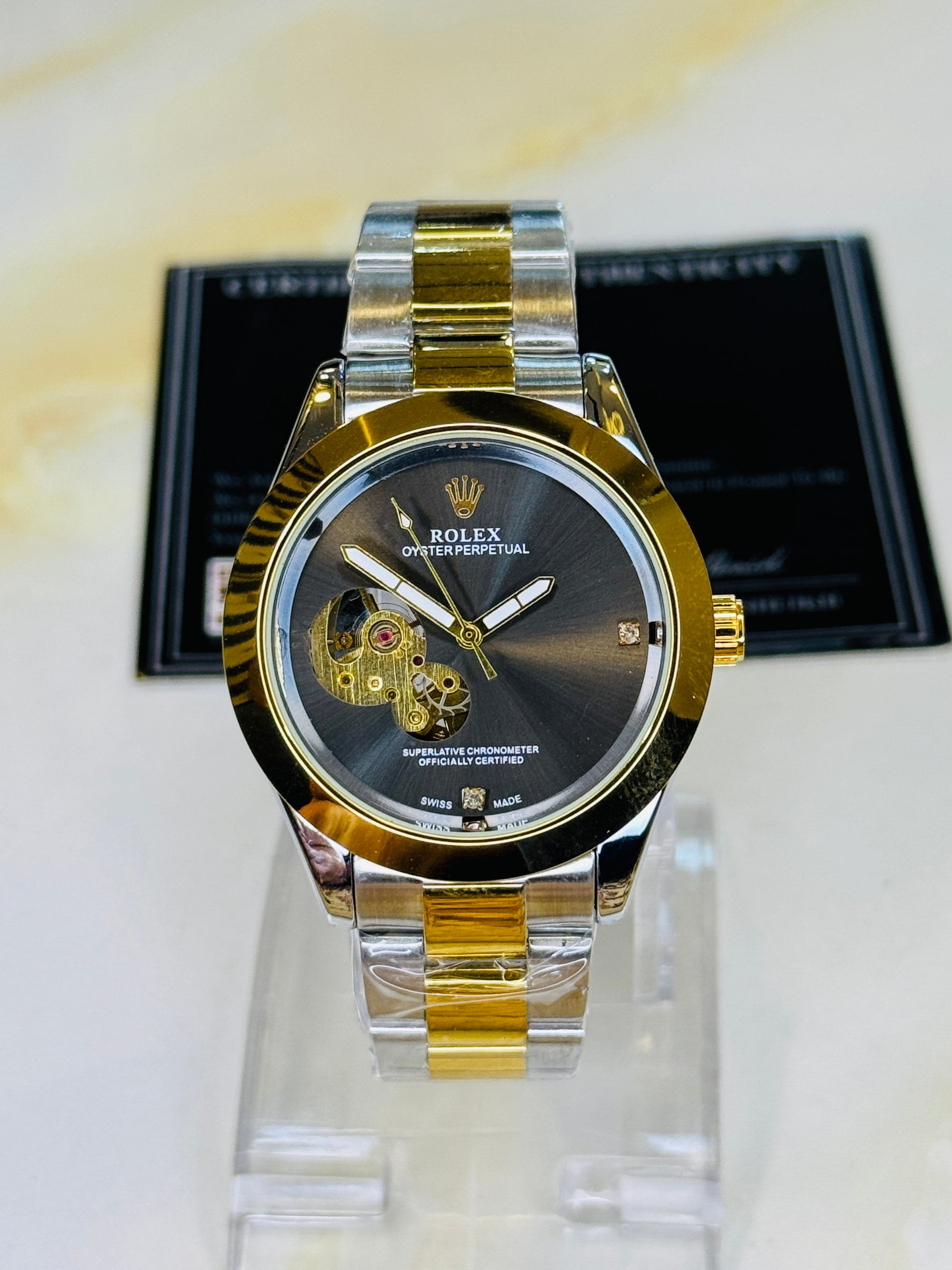 Two Tone Metallic Hawk Eye Automatic Rolex Watch