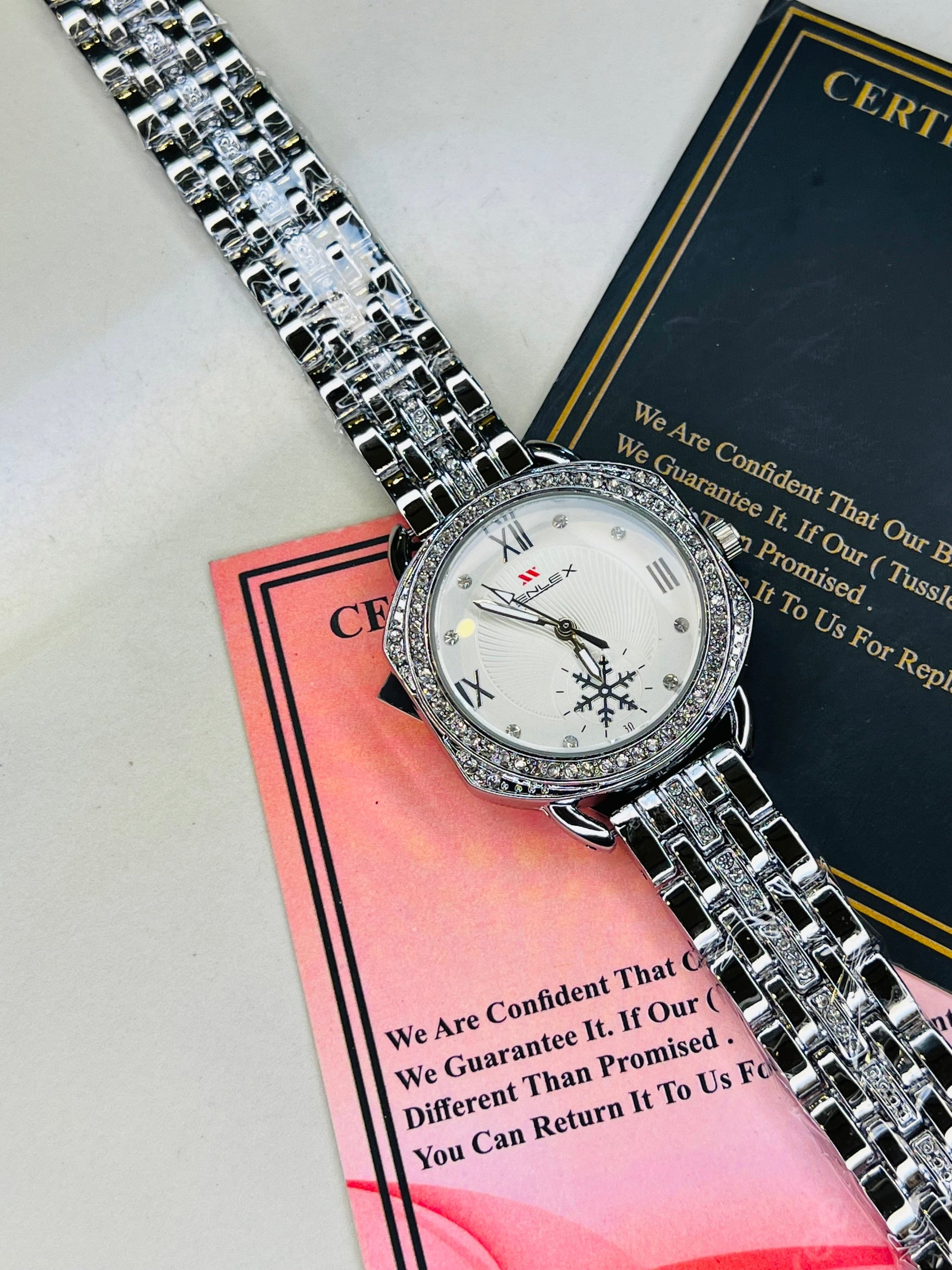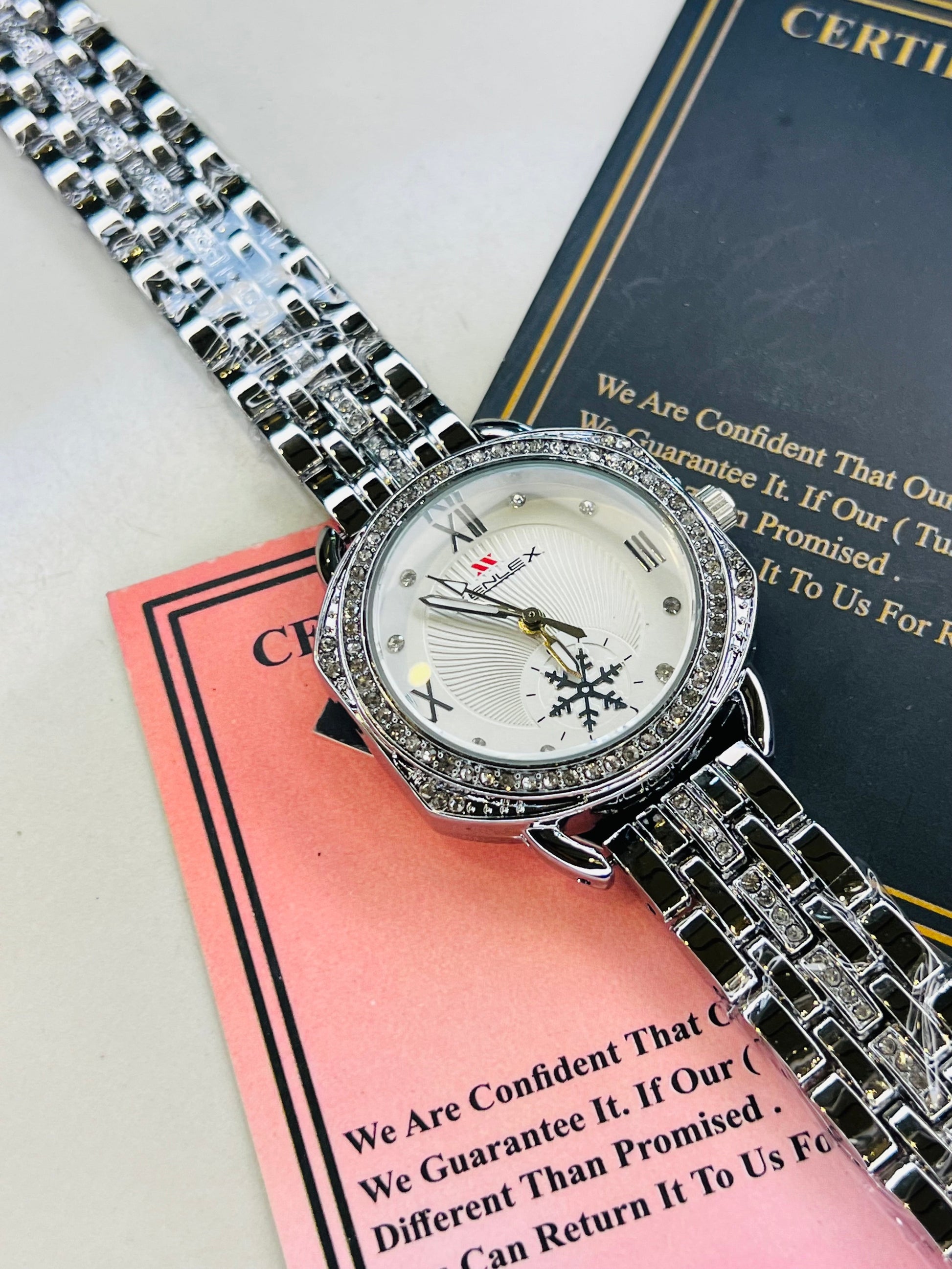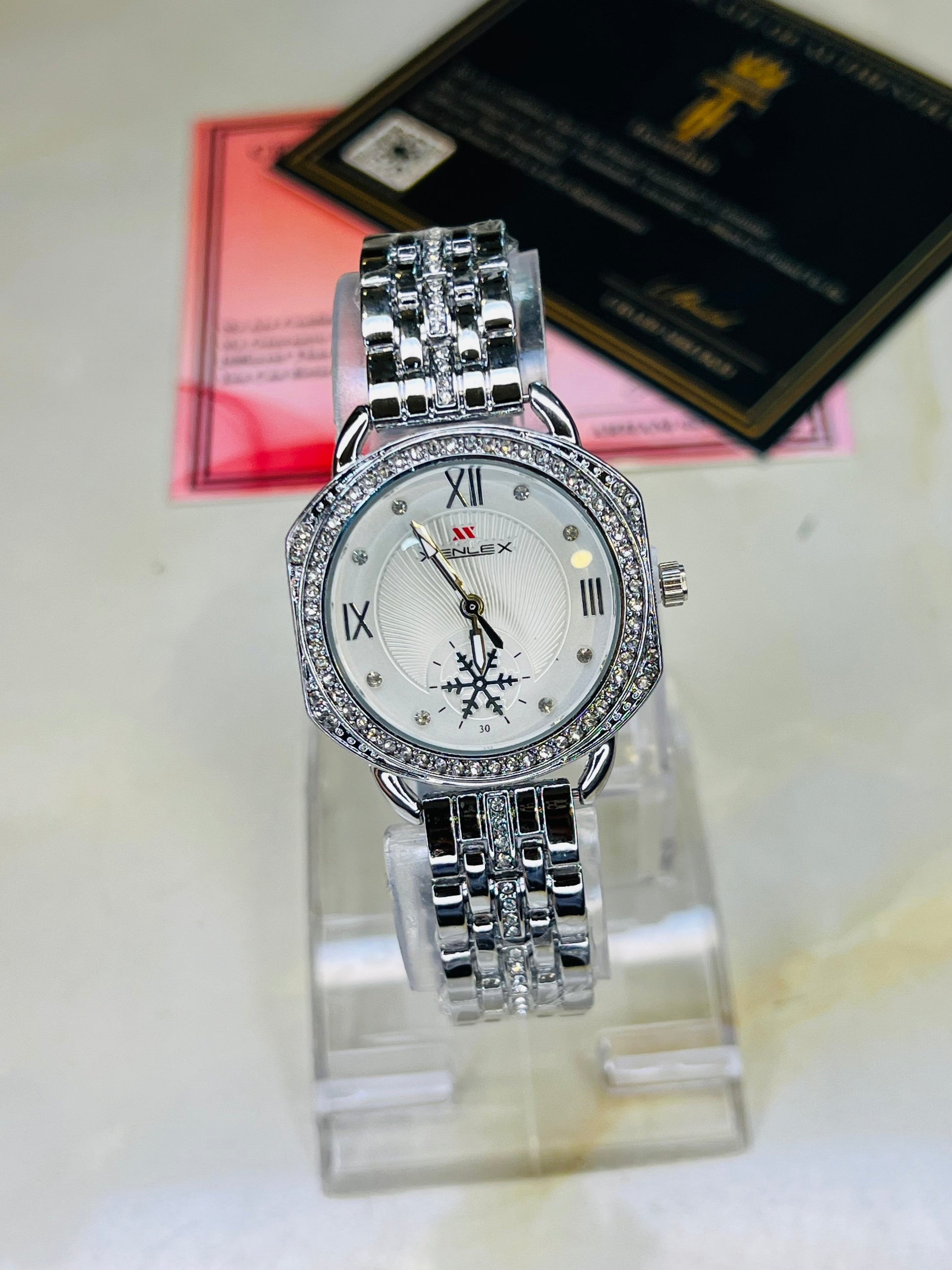 Xenlex Silver White Zircon Watch For Her