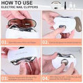 - 【Nail Clippers with Catcher】Baby nail trimmer electric with Extra large nail debris storage box, no need to stop the nail clipping process because it is full during use. Electric nail clipper with cleaning brush, easy to clean.