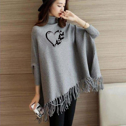 • FashionPoint Butterfly Heart Printed Winter Collection Poncho