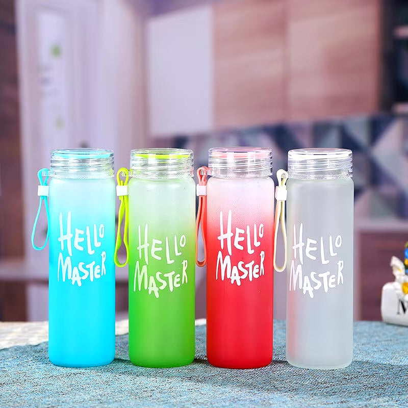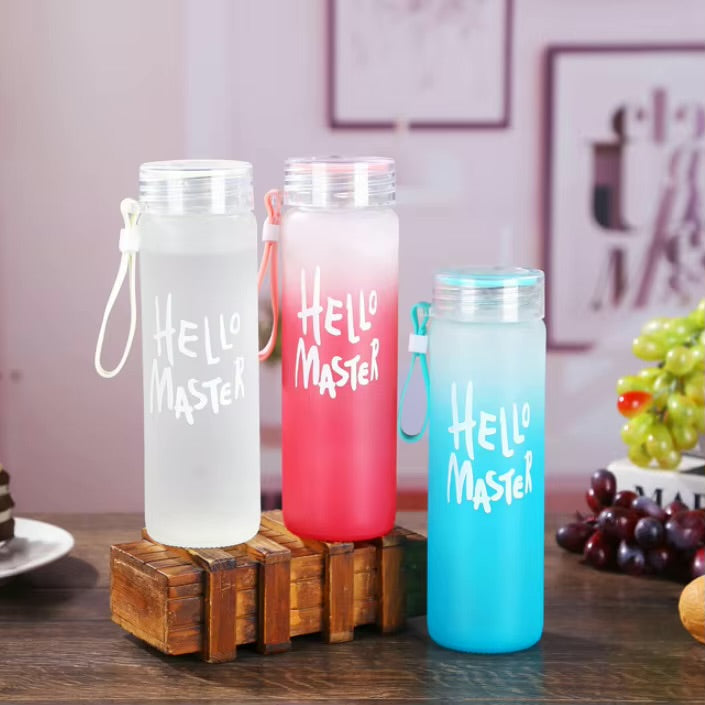 Frosted Glass Water Bottle With Hello Master Decal Logo – 400ml