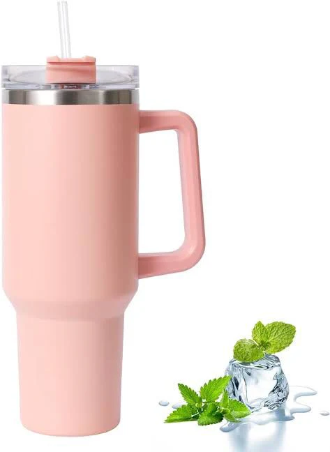 Insulated Tumbler With Handle Straw 40oz Stainless Steel Vacuum Cup Thermal Mug
