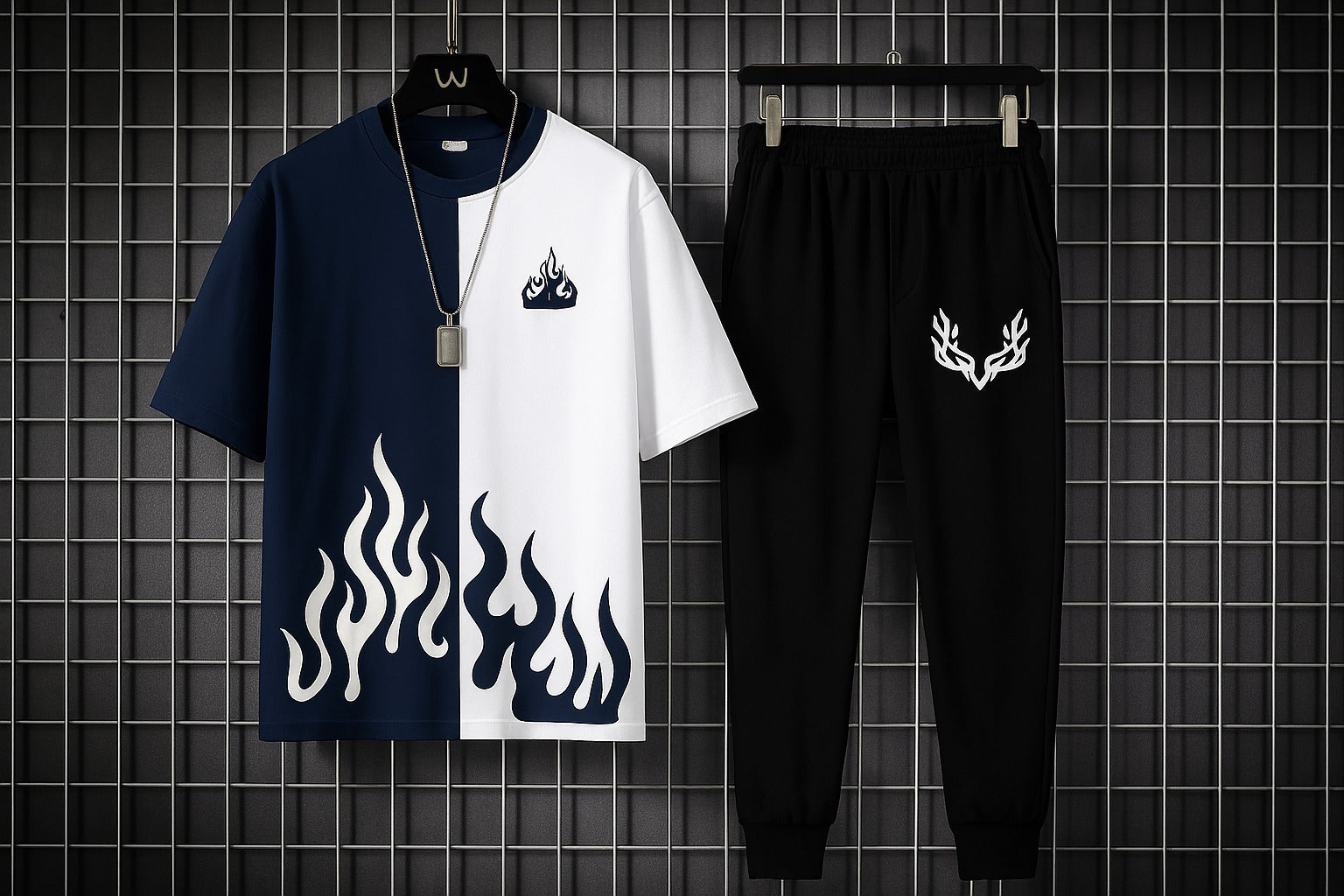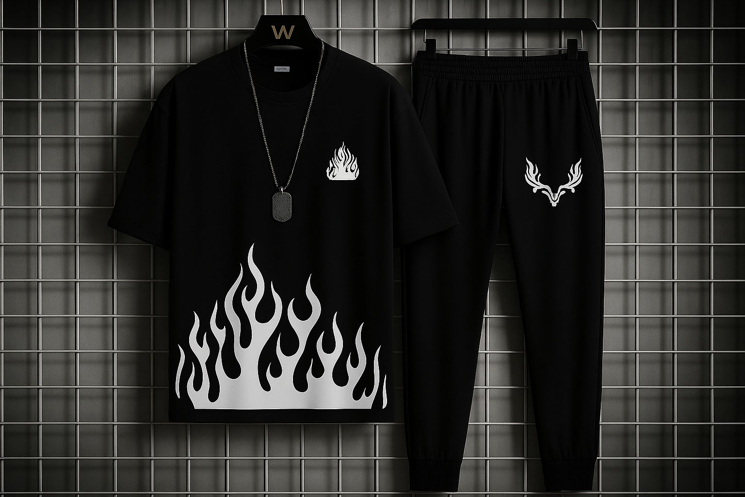New trendy fired printed black & white premium quality tracksuit for men and boys / Tracksuit for men & boys with shorts or tracksuit for men & boys with trousers
