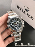 Rolex Daytona Rotating Bezel Quartz Machine | Quartz Chronograph Movement Silver Stainless Steel Strap Watch With Master Lock For Men ( With Normal Box )