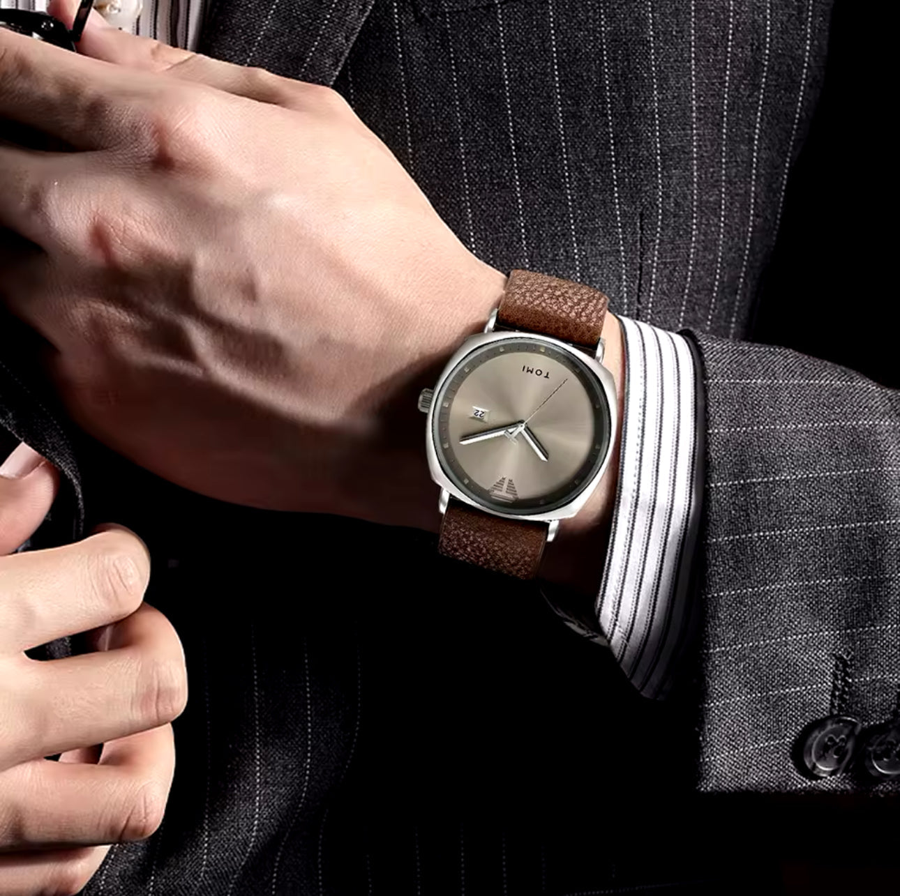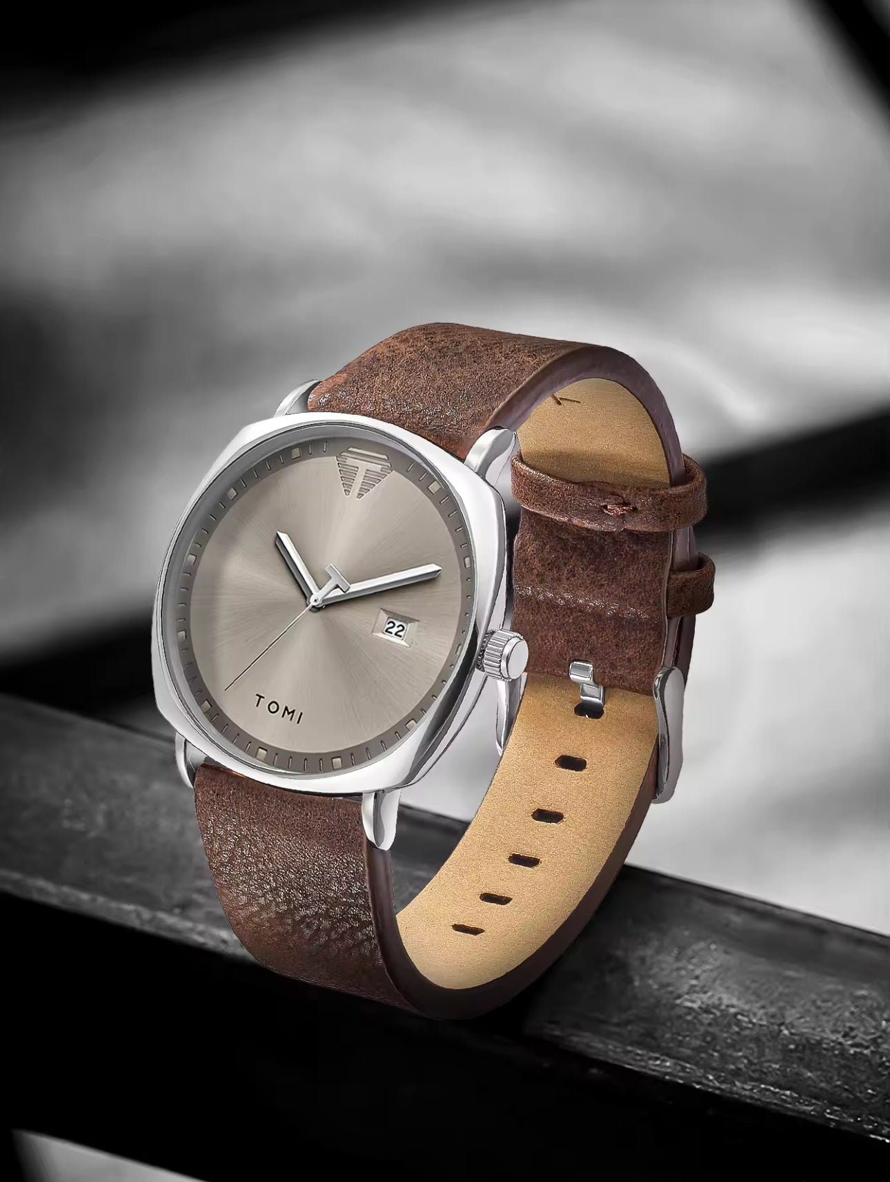 Introducing the Tomi S8 Brown Silver Sleek Gift Set. Designed by industry experts, this gift set includes a sleek dial watch, leather wallet, pen, and watch. Perfect for any occasion, this set offers a complete package of style, functionality, and sophistication. Upgrade your accessory game with this exclusive set.